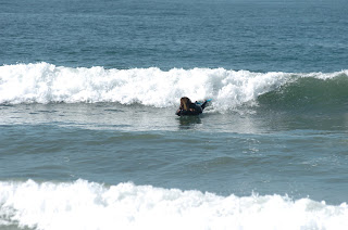 My third session on the mat came after an hour and a half on the surfboard. It's becoming clear to me now that matting is a hell of a good full body workout. You've got to have some gas in the tank in order to get the most out of a mat session. I'd say my tank was only half full when I went out today. And yes, the waves, the set waves, were head high. Paddling out was, in a word, brutal. I had no idea how to get to the outside with all of these head high waves coming at me. I couldn't kick hard enough to get past them before they broke. I couldn't really duck dive them. All I could do was try to dive under them while leaving my arm outstretched in an attempt to let the mat pass over the waves. When I did get outside, I was tired, almost too tired to try for waves. This session presented me with more variables than I could process at one time.