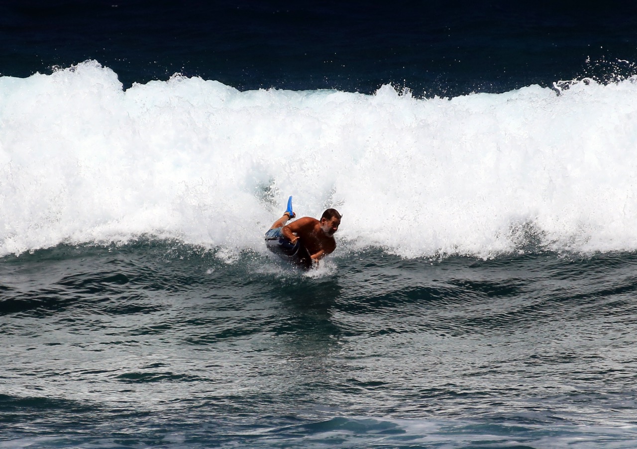 We saw Corky Carrol (whom I did not recognize) on a sup (!!) - wearing a Barcelona / Messi - soccer-jersey as a rashguard. He didn´t even know who Messi is.
